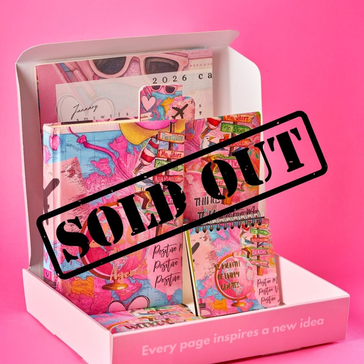 Inside the box you’ll find: a daily planner, weekly planner (52 sheets), mini inspiration stand (12 quotes), to-do list, stickers, bookmark, 2026 calendar, and 2 premium coasters — all available in 6 unique designs.