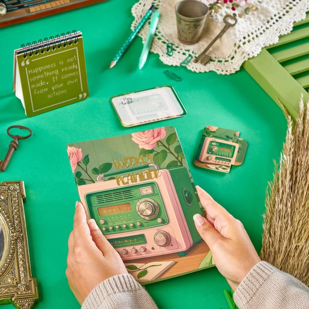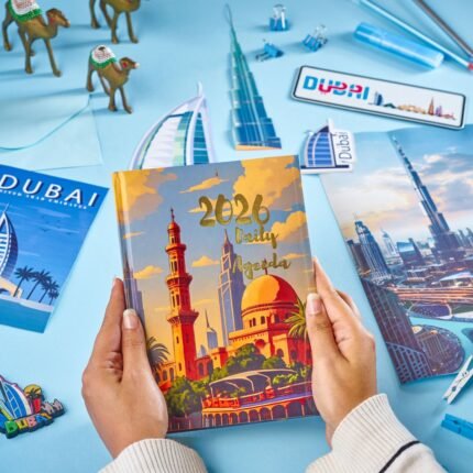 Inside the box you’ll find: a daily planner, weekly planner (52 sheets), mini inspiration stand (12 quotes), to-do list, stickers, bookmark, 2026 calendar, and 2 premium coasters — all available in 6 unique designs.